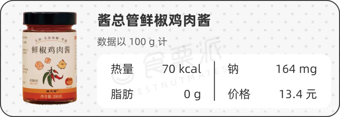 這款的配料特別簡單,只有雞肉、辣椒、食用鹽和雞精,沒有像其他辣椒醬加添加糖或代糖,所以明明是鈉最低的一款,吃着卻偏鹹。