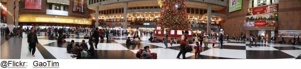 另外,我非常喜歡台北車站的大廳,由黑白格子相間組成的。下圖為每逢聖誕節時,站廳的聖誕樹以及席地而坐的旅客們。我喜歡這種開放式空間,簡單輕鬆又幹淨。