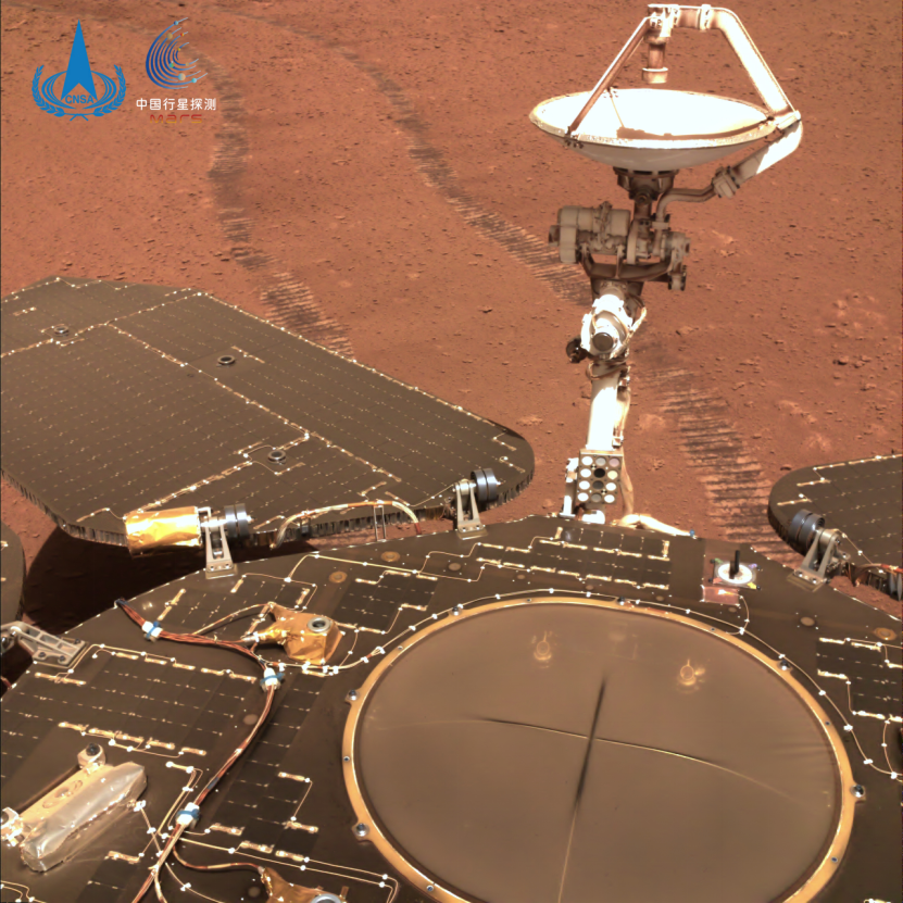 “祝融號”火星車也從火星表面傳回自拍照,相比剛剛着陸時拍的照片,可以看出火星車表面已積累了一層薄薄的沙塵。同時,通過火星車的遙測信息判斷,太陽翼的發電效率受到一定影響,但能源仍然充足。為了應對沙塵覆蓋,火星車太陽翼進行了特殊設計,可採取多種措施應對沙塵引起的發電效率下降問題,目前尚無需使用,當前能源狀態足以支持火星車繼續行駛並開展探測。