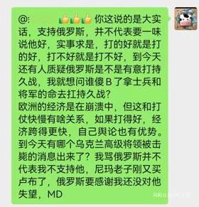 好吧,最後我強調一下,俄羅斯的戰爭是反納粹的正義戰爭,我支持俄羅斯。