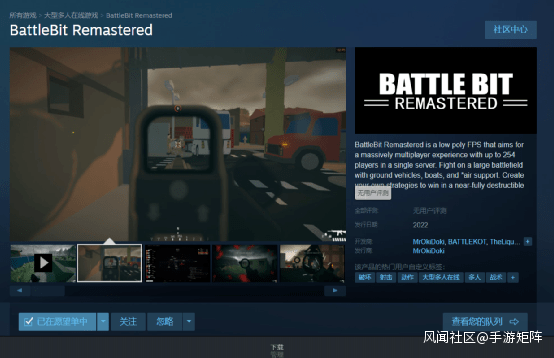 《Battlebit Remastered》是Steam上的一款低多邊形(low poly)的多人FPS遊戲,旨在通過服務器實現最多254位玩家同時在線的多人對戰,玩家可以使用地面載具、船隻和空中支援在龐大的戰場上作戰,在幾乎可以破壞一切的地圖上運用策略和技術取勝。遊戲目前尚未發售,但會定期開放免費測試,玩家可以自主申請參與測試,並且在服務器開放的測試期間進入遊戲免費遊玩。