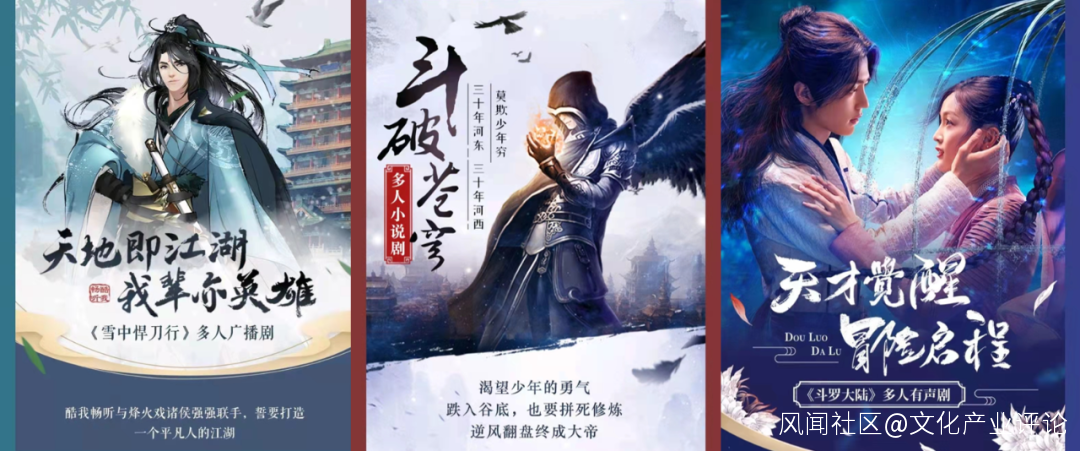 2020年4月,騰訊推出長音頻APP“酷我暢聽”,覆蓋有聲小説、廣播劇、評書相聲、情感綜藝等多品類內容。閲文集團作為“酷我暢聽”有聲內容的合作方,聚合了旗下超級IP的優勢資源,助力開發獨家廣播劇。迄今,用户在app上已經可以享受到《劍來》《盜墓筆記》《白夜追兇》《鬥破蒼穹》《斗羅大陸》等廣播劇。2021年熱映的《雪中悍刀行》的廣播劇更是突破了1.1億播放量。