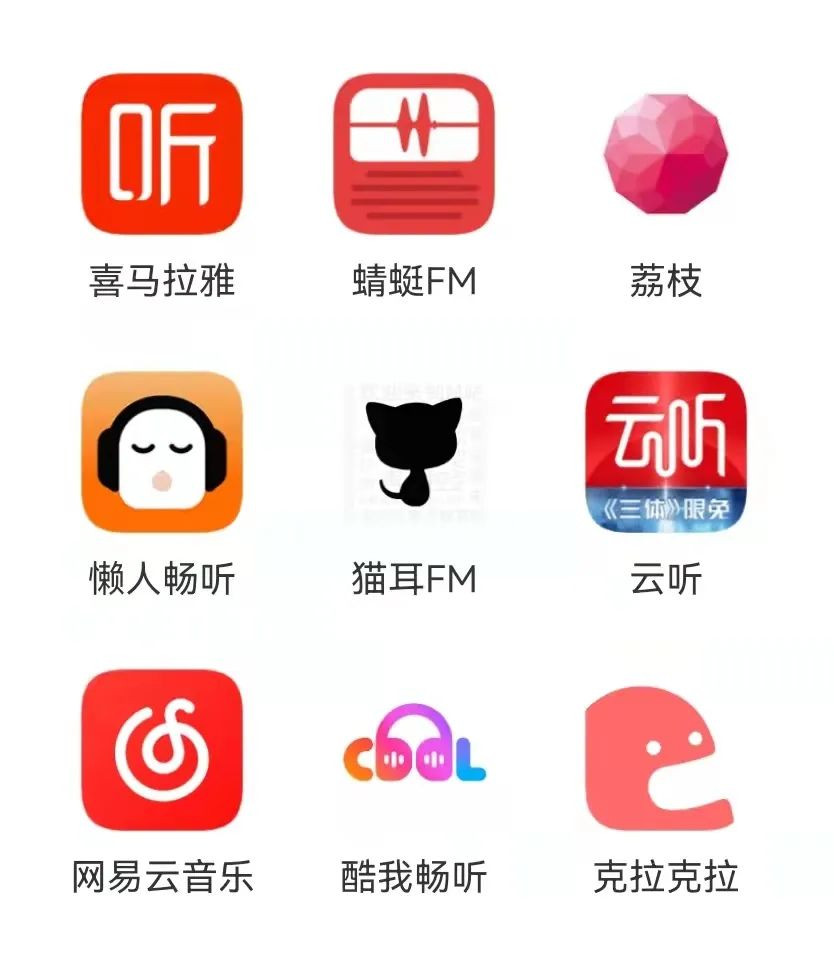 貓耳FM、蜻蜓FM、喜馬拉雅……