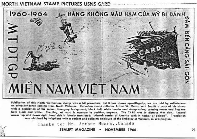 對於游擊隊員這一次大膽行動,越共游擊隊領導人和北越當局都做出了高度評價。北越的報紙説“卡德”號航母被炸出了一個長8米,寬1.2米的大洞;海水陷入淹沒輪機艙使其傾覆沉沒,共造成船上55名美軍喪生。北越還專門發了一張郵票,紀念此次“大捷”。