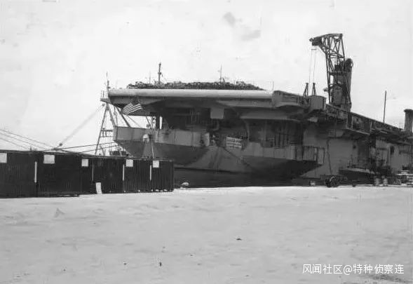 提到護航航母許多人都知道,就是二戰時美軍在貨船的基礎上改造的最簡易航空母艦。“博格”級長151.2米,吃水7.9米;滿載排水量15390噸,接近美軍“獨立”級輕型航母。但其輪機功率偏低使最高航速只有18節,只相當於老式主力艦。其機庫面積也不大,只能塞下28架二戰時的螺旋槳戰機。
