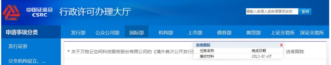3月7日的時候,證監會官網顯示已接收萬物雲(萬科的物業)境外首次發行股份審批材料。