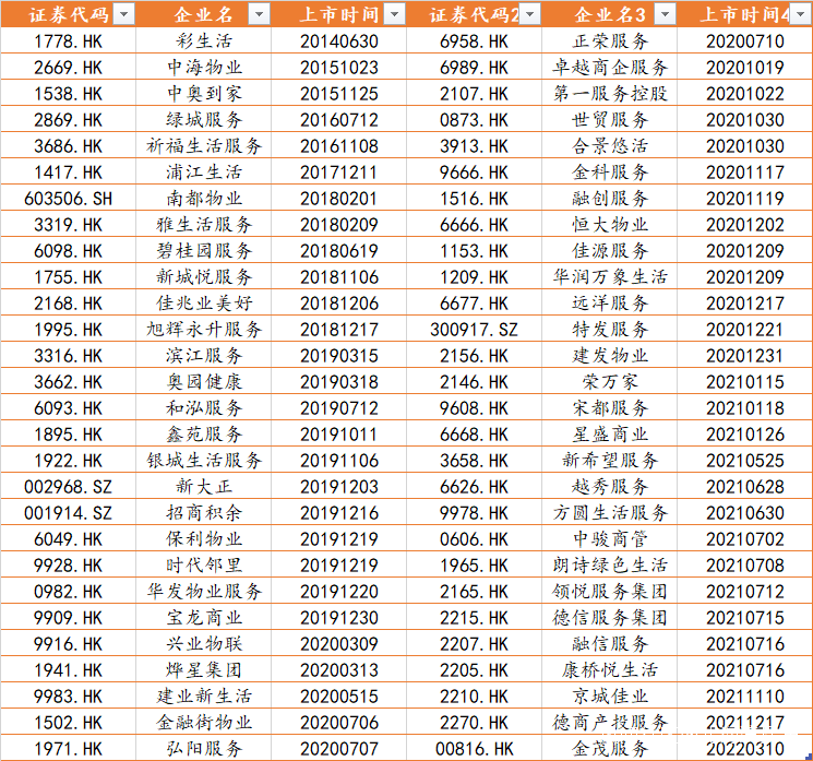 一共有超過50家物業公司上市成功,這裏麪包含了很多開發商所拆分出去的物業公司。