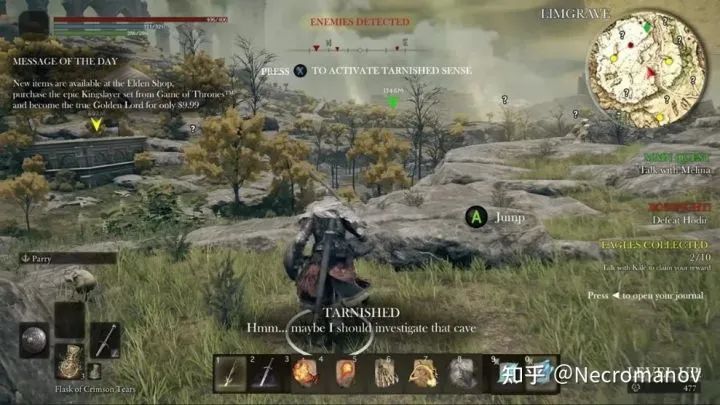 如果我們打開法環,會發現裏面到處都是惡魂、黑魂、血源們沒有做過的易用性設計和指引優化,甚至他們還在不停嘗試做更多新的易用性;也許再過幾年,這張惡搞圖上的部分設計就會變成現實。