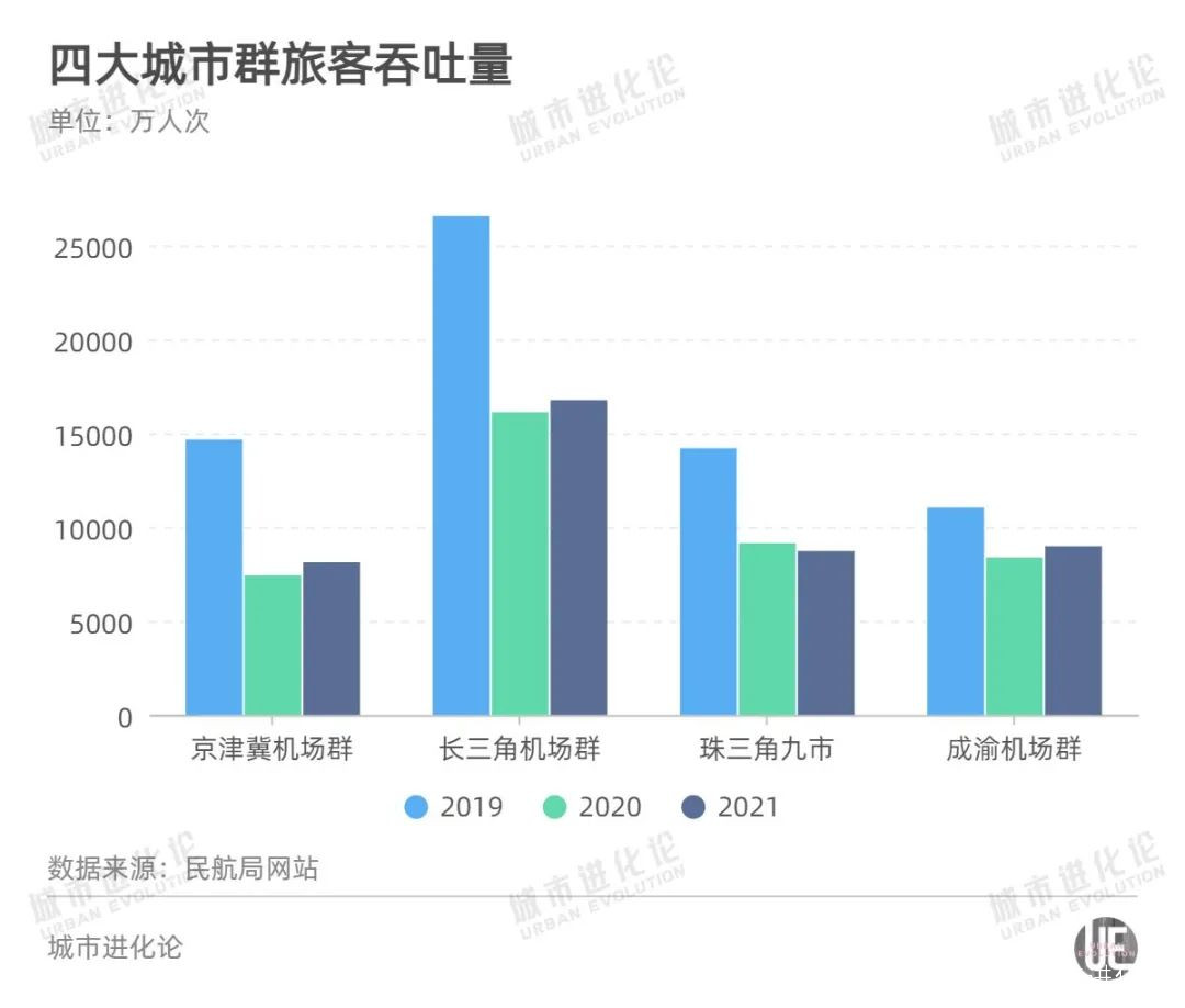 從城市羣的角度來看,四個提出要建設“世界級機場羣”的區域表現不一。