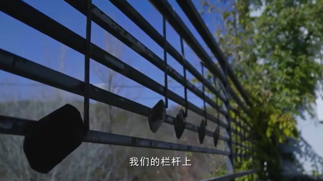 屋外的烏黑鐵門上,音樂古琴的圖案;屋外的欄杆上,由一個個音符組成的五線譜……