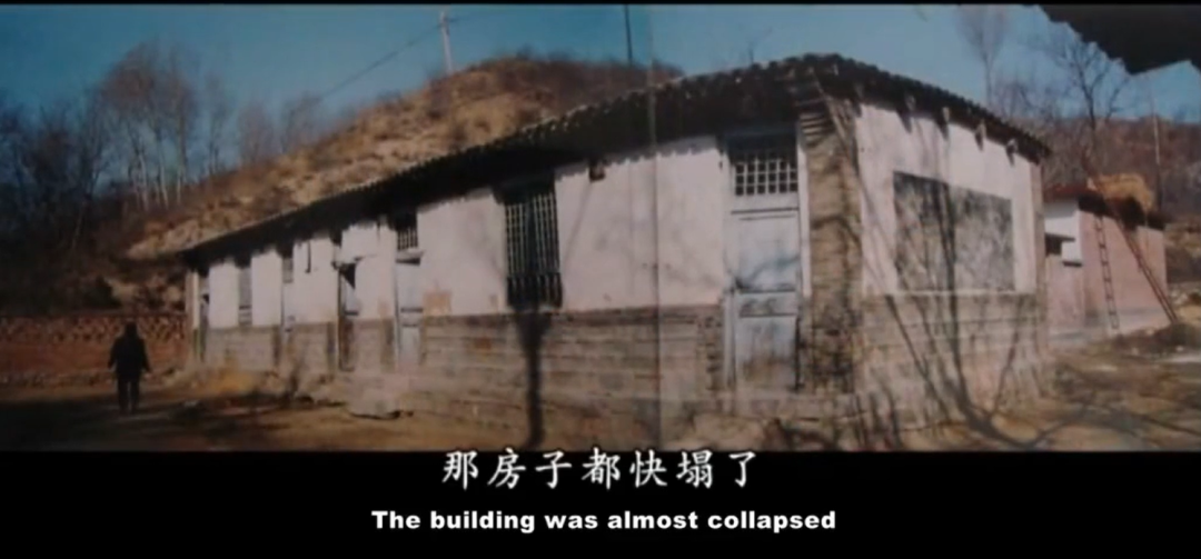 馬蘭村的小學教室,破到快塌了,“房間裏要用大木頭支着房頂。”