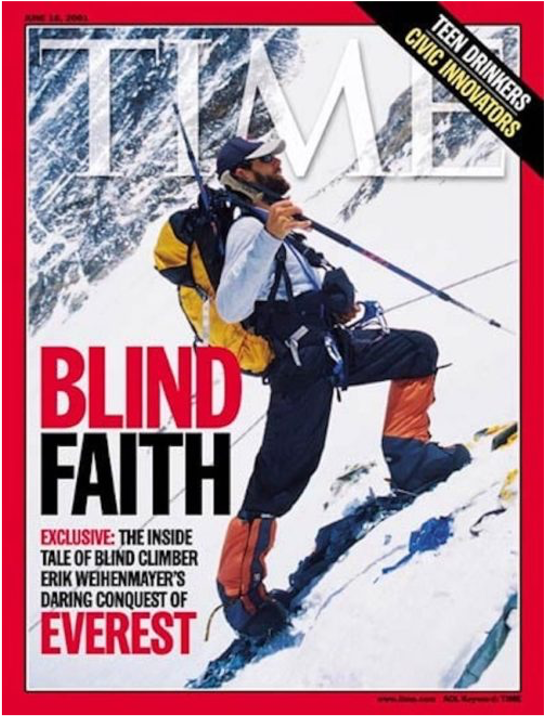 我聽了後又刺激又興奮,之前從來不運動、對雪山沒有任何概念的我突然問,老師,有沒有盲人登珠峯的?他説,有,美國人埃裏克是全球唯一登頂珠峯的盲人。