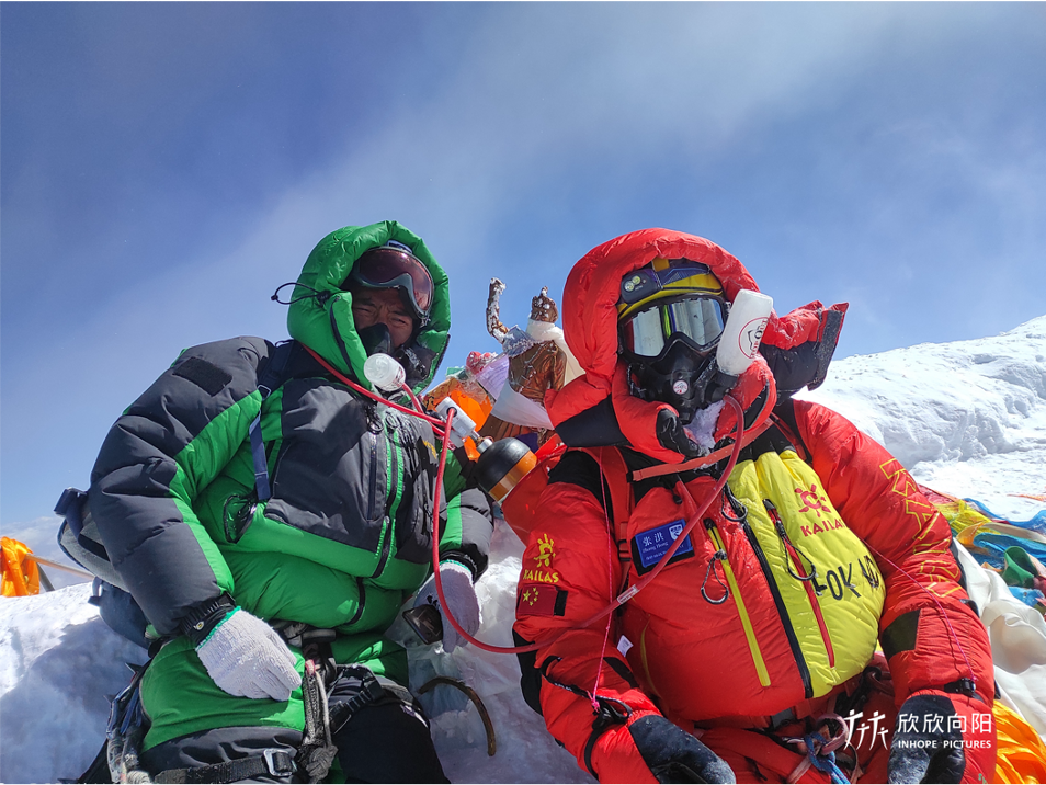 在海拔8700米的死亡地帶,一般人缺乏輔助氧氣很難挺過十分鐘。在這生死關頭,強子從後面趕上來對我説,氧氣可能有問題,為了保證我能夠安全登頂,他們決定,包括他本人和兩位攝影師在內的五人下撤,留下足夠的氧氣,讓三個狀態最好的夏爾巴嚮導帶我繼續衝頂。