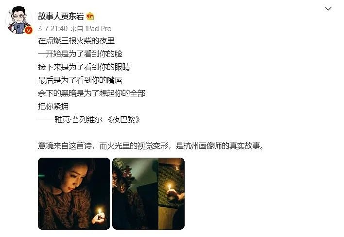 編劇賈東巖在微博上解釋,火光裏的視覺變形,是杭州畫像師的真實故事,而女犯人的這段描述也是化用自一首詩。
