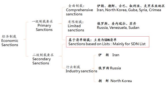 一級制裁要求:(1)美國人不得與屬於制裁目標的國家、實體和個人進行交易;(2)美國人不得為非美國人與經濟制裁目標之間的交易“提供便利”;(3)非美國人在與制裁目標交往中如涉及美國元素(美國人、美元、美國物項等),則可能轉化為一級制裁。