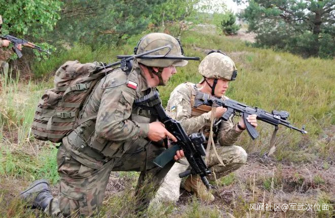 ▲不得不用AK參與北約聯合演習的烏克蘭士兵(右)