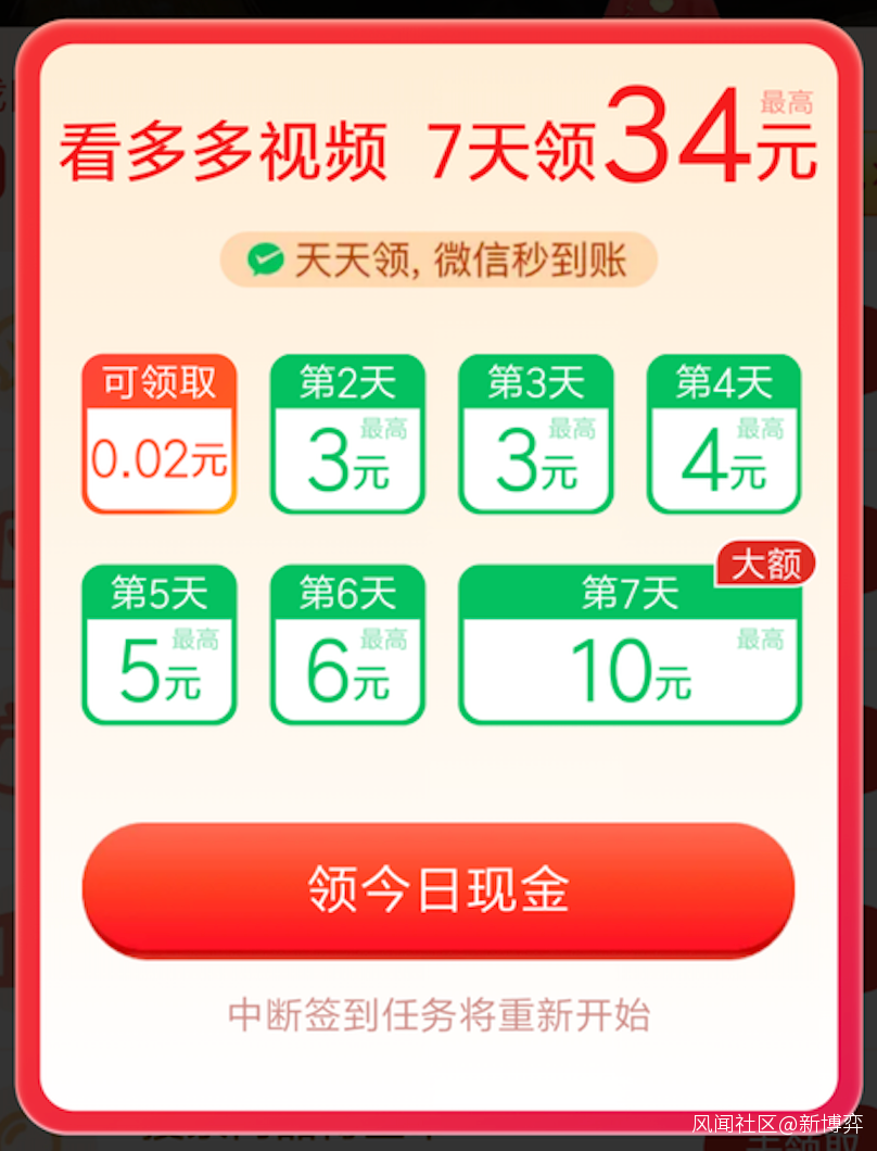 多多視頻依舊沿襲了拼多多“補貼拉新”的遊戲模式。用户每看一條視頻,微信賬户就有零錢即刻到賬,同時頁面還有玩遊戲領產品的入口以及商品購買彈窗,對於其他平台的大V入駐也有豐厚的補貼措施。