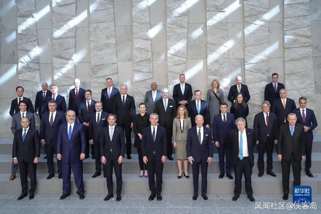 3月24日,北約特別峯會期間,與會者合影。圖源:新華社
