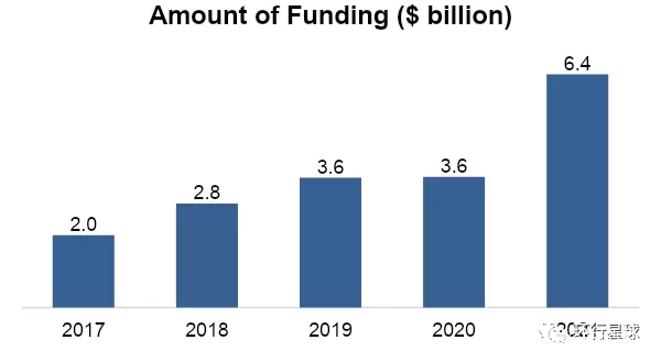 2017 - 2021年流入韓國創業公司的投資額。