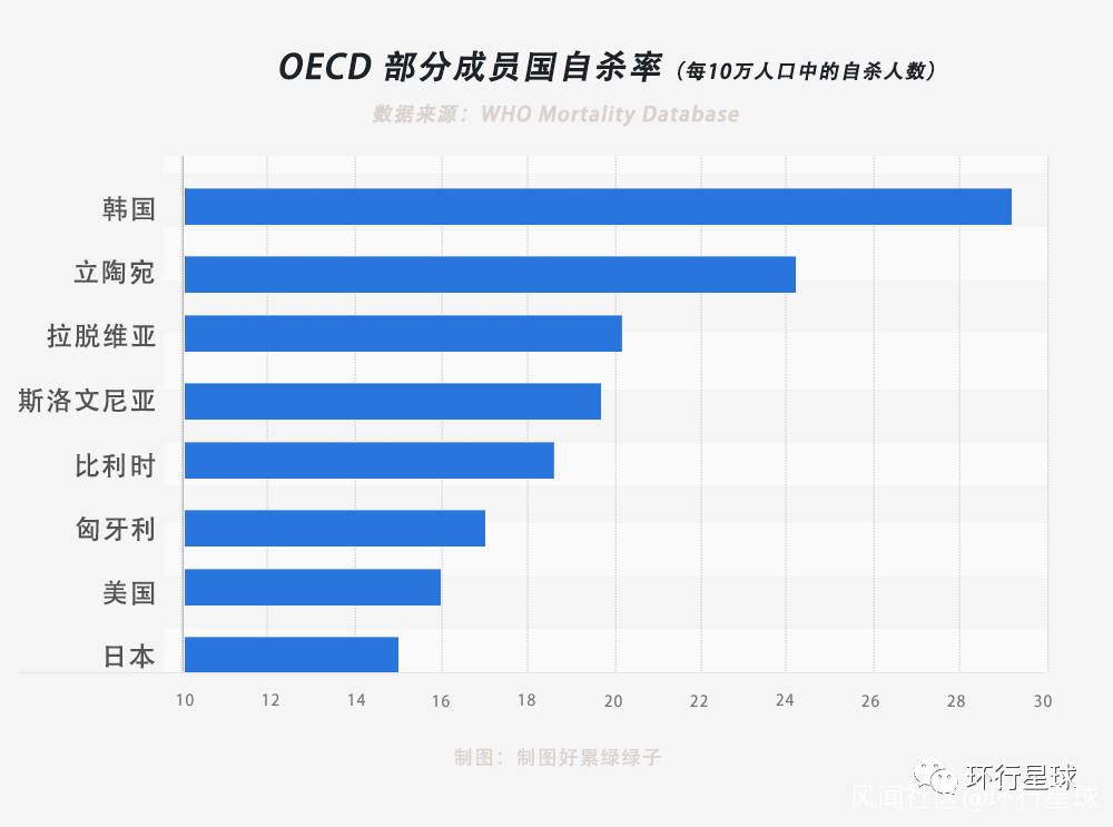 這就導致即使韓國是發達國家,可怕的內卷仍然嚴重拉低了幸福感,自殺率也相當高,據統計韓國平均每天有40人自殺。