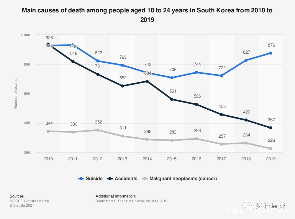 自殺一直是韓國10-24歲人羣的首要死因。