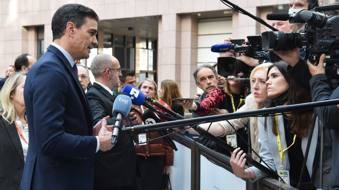 ● 西班牙首相桑切斯在歐盟委員會會場外 / 網絡