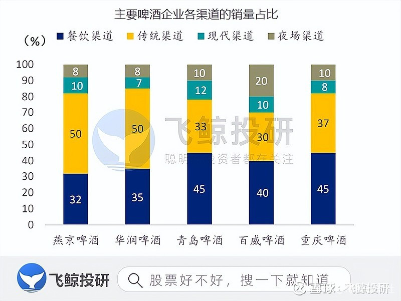 最重要的原因,可能**是因為華潤啤酒受疫情影響相對較小。**因為它的銷售渠道以傳統渠道和餐飲渠道為主。根據飛鯨投研數據,華潤啤酒50%的渠道為傳統渠道,包括商超、名煙名酒店、便利店、冷飲攤等。