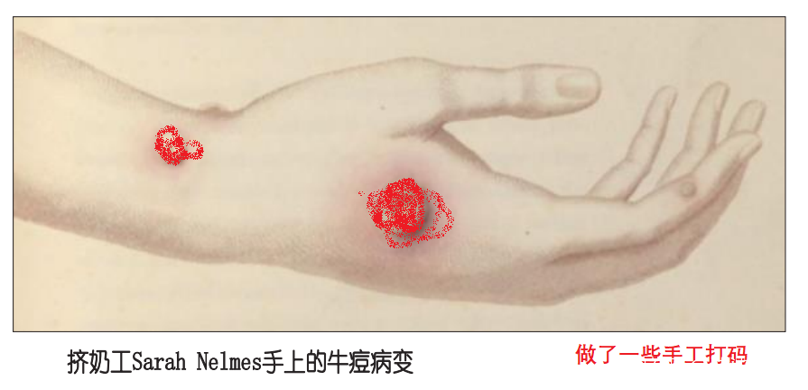 説完東方,西方也沒有閒着,有文獻認為種人痘的技術在印度、奧斯曼帝國的巴爾幹地區、中國分別被獨自發展出來,但此説法很難被有力證實。無論如何,人痘接種術傳播到了歐洲、美國等大半個地球,各地的人痘接種手法不盡相同,但致死率大體相當,雖然挽救了大量生命,但與現代疫苗相比,人痘仍然是非常不成熟的。時間來到18世紀末期,英國鄉村醫生琴納(Edward Jenner)經過調查並確信,擠奶工等畜牧工人在得了一些從牲畜身上傳來的痘病後,就不再感染天花,由於彼時人痘已經在英國得到廣泛認知,琴納因此認為牲畜痘感染人可以讓人類得到猶如種人痘一樣的,對於天花的抵抗力。1796年,琴納將一位從牛乳房上感染痘病的擠奶女工Sarah手上的痘包刺破,取出痘漿接種到了一位8歲男孩手臂上,男孩只出現瞭如傷口紅腫發膿、全身低熱、腋下淋巴結腫大等輕微的症狀,甚至沒有如擠奶女工一樣發出明顯的痘包。男孩痊癒後,琴納用天花患者的痘漿再次接種男孩的手臂,男孩沒有任何感染反應。後來,琴納和他的朋友將這種痘苗取名為vaccine,意為“牛的痘”。接種牛痘雖然有可能引起一些嚴重的不良反應,但相較於接種人痘,整體致死率仍然大大降低,達到了萬分之一至十萬分之一的數量級,很快在世界各地流傳並替代人痘接種,並最早於1805年到達廣州,自此在中國“人痘與牛痘二法在19世紀末至20世紀初,明顯呈此消彼長趨勢”。後面的故事不必多説,牛痘疫苗的接種擴展到全人類,並最終消滅了天花。