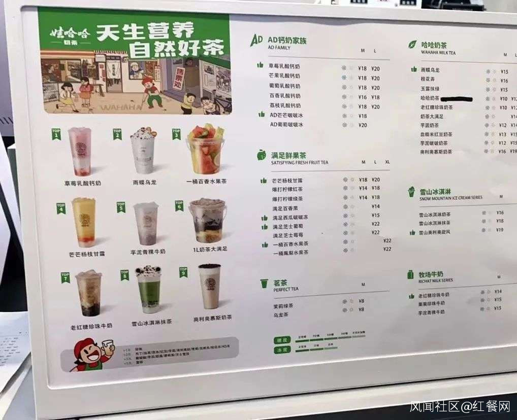△娃哈哈奶茶菜單,圖片來源:紅餐網攝