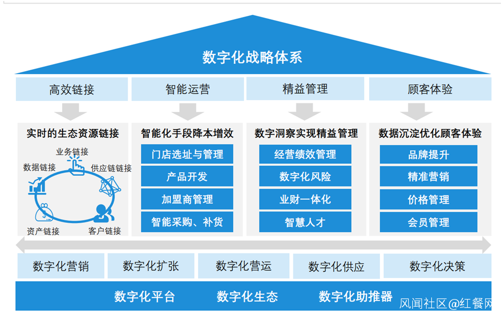 對食品與連鎖餐飲企業而言,數字化轉型的構成包括四個方面: