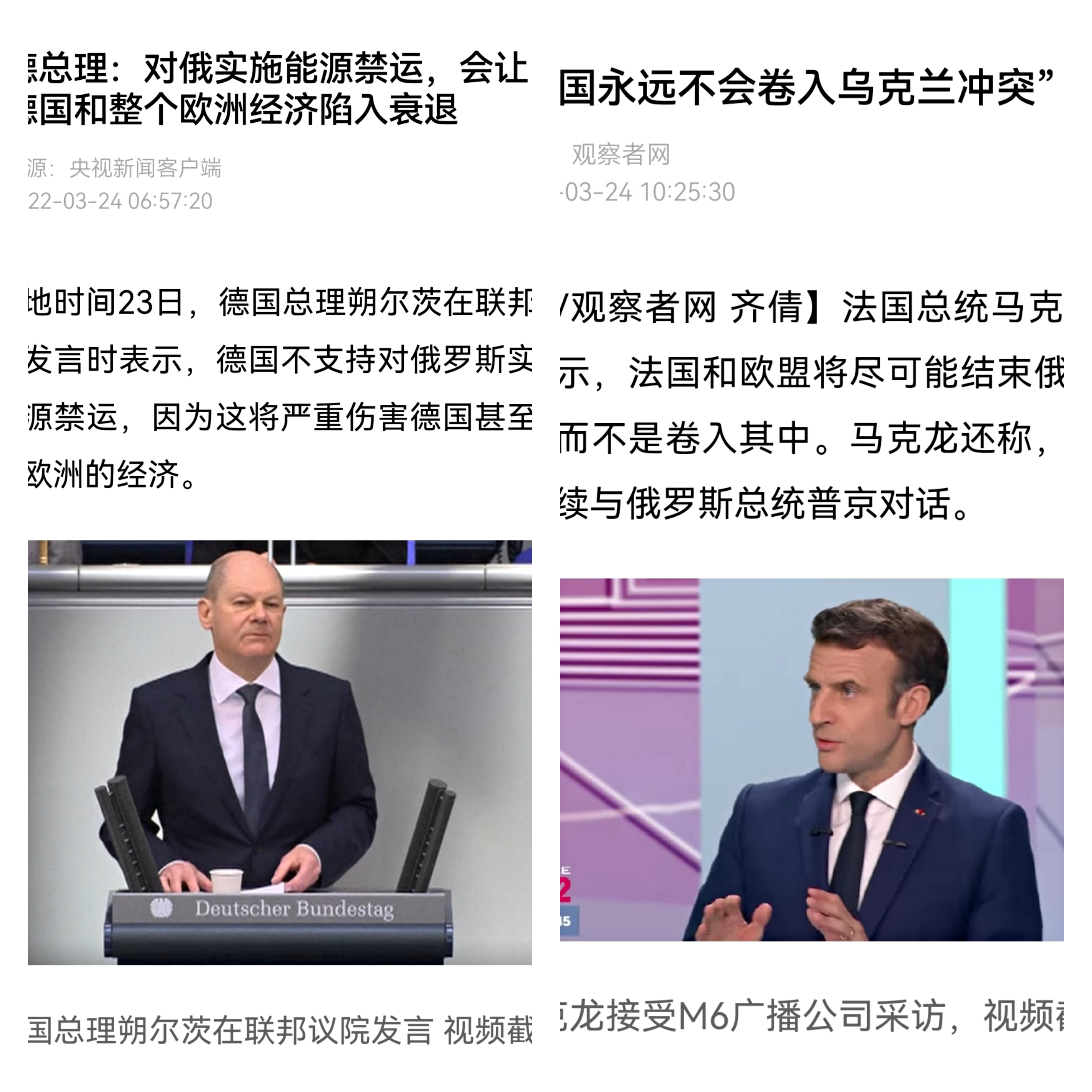 俄烏衝突開始不久,我就在多個帖子中説,如果衝突持久,首先軟下來求和妥協的會是歐盟尤其是法德。