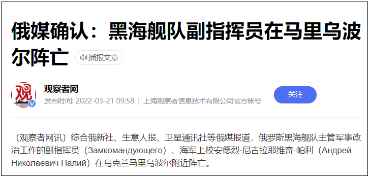 但是,我們沒有看到任何的照片或視頻作證,而俄軍只公佈了一名副指揮員陣亡,其他的都沒有辦法證實。