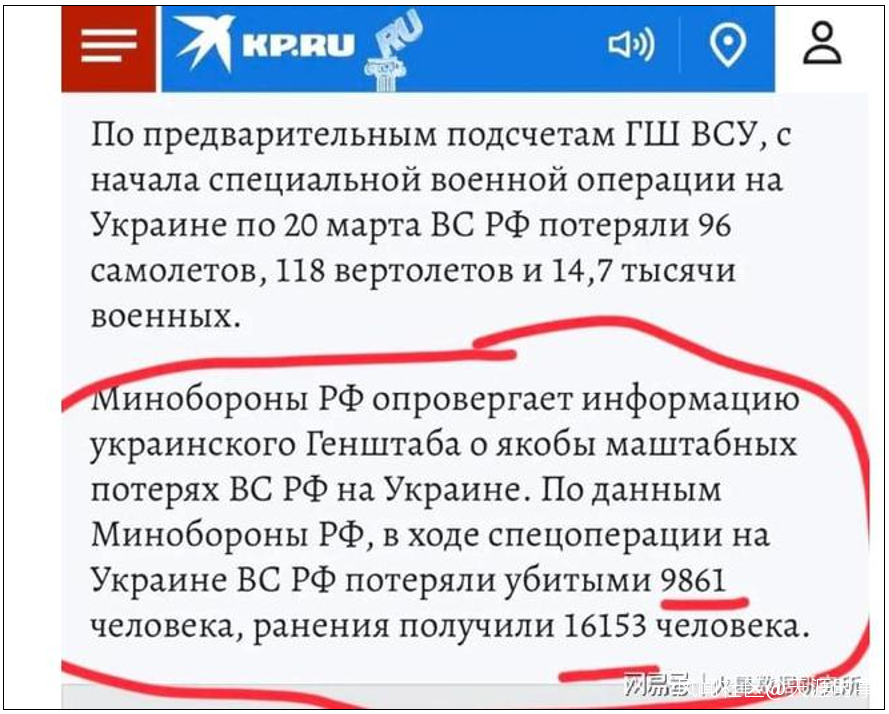 比如,屁股一直比較歪的鳳凰網,最近節奏帶的非常快,一會説俄軍死了上萬人了,一會説烏軍人數已經達到30萬了,是俄軍的兩倍了,而且開始反攻了……