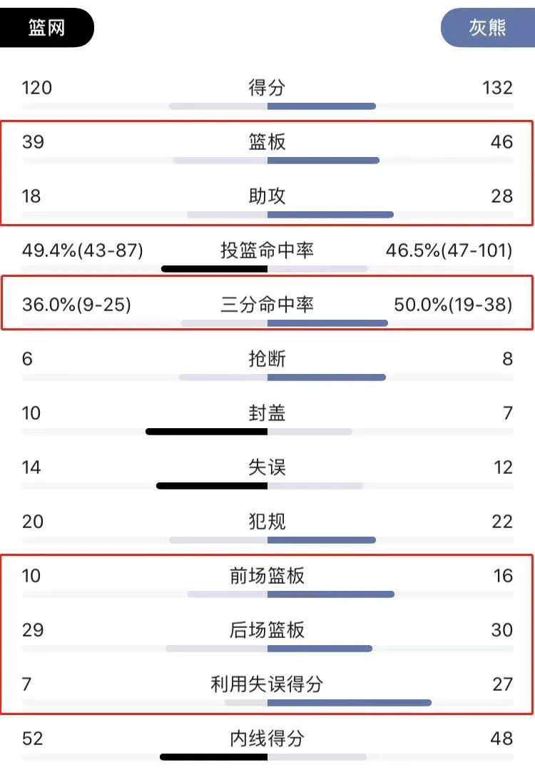 上述的數據對比可以看出,灰熊對於籃網本該是全面壓制,恨不得一拳把籃網打得爬不起來。