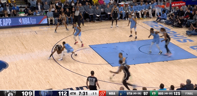 灰熊在第二節領先到18分,但第二節末籃網就追到過9分。第三節再被拉開,但第三節末籃網直接反超。