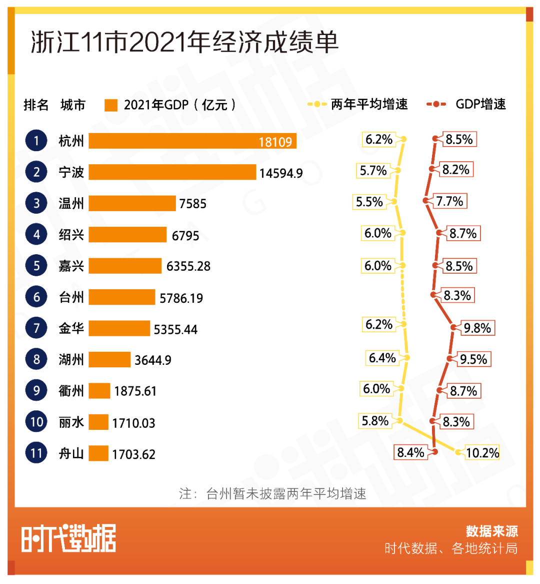 浙江11市2021年經濟成績單:杭州GDP全省第一,舟山增速亮眼_風聞