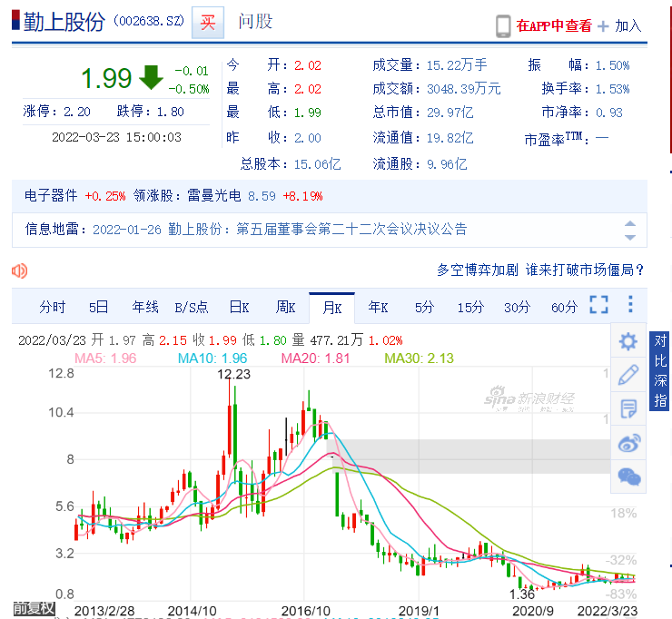 今時不同往日,無論是市場環境還是勤上自身,都已經不再是那個豪擲70億元“買買買”的時期。截至2021年6月30日,勤上的現金及現金等價物餘額為4.15億元,比2020年同期減少了4億元。勤上的股價也已跌至1.99元,比當初進軍教育時縮水超7成。