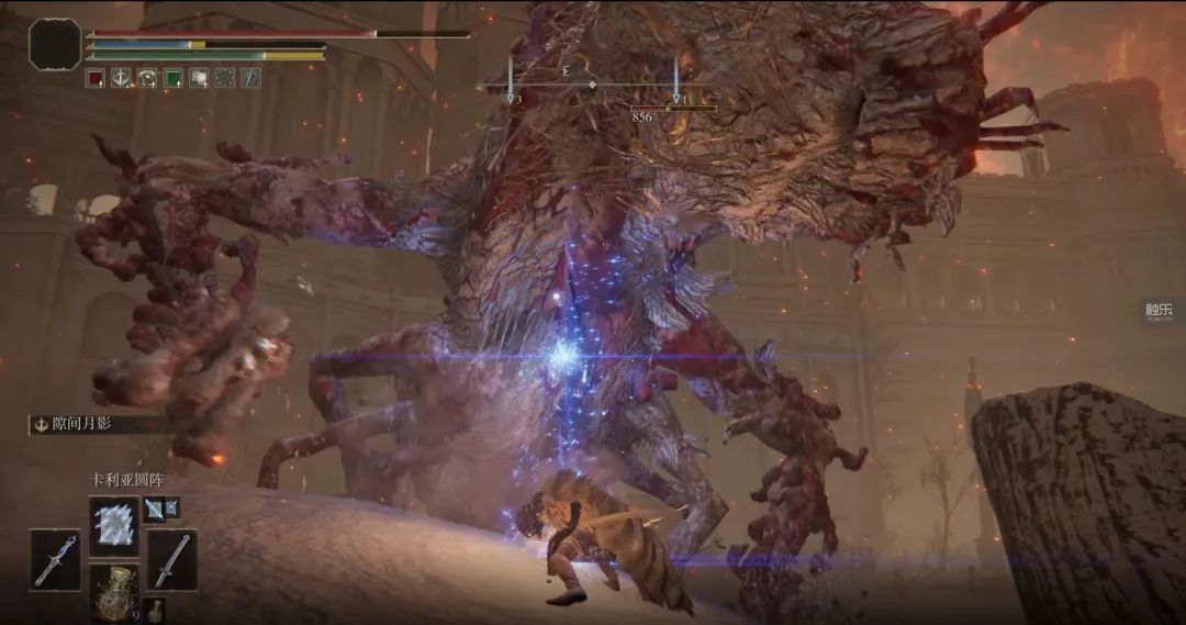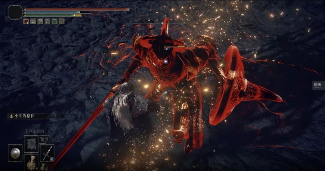 畢竟《艾爾登法環》的盾真的太脆了,1.03版本加強了抵擋力,卻削弱了“鐵壁盾防”,可能除了指紋石盾還是不怎麼能抗,近身翻滾又容易挨AoE。你就只能儘快把Boss的隱藏架勢條打滿,讓對面一直硬直,不要再出那些瘋狗招式。至少在舊版本里,我有時候會算好刀數和Boss拼刀,大部分時候是能剛好在Boss打到我之前出處決硬直的。如果只是追求通關的話,戰鬥系統並沒有給我造成特別大的困擾。新版削了月隱之後,我可能就會更謹慎些。