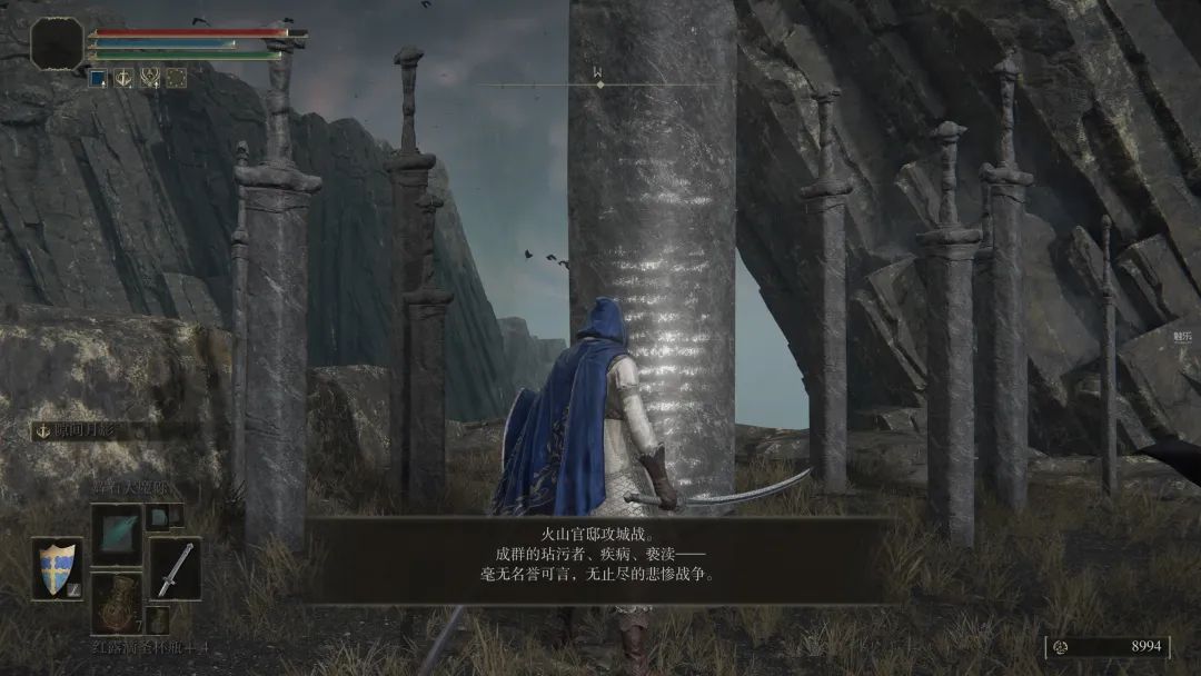 遊戲中隨處可見這種記載碎片戰爭歷史的劍碑,故事也許出自馬丁之手
