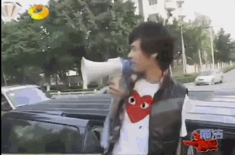 他拿着喇叭大喊:“免費演唱會~大家過來一下~”