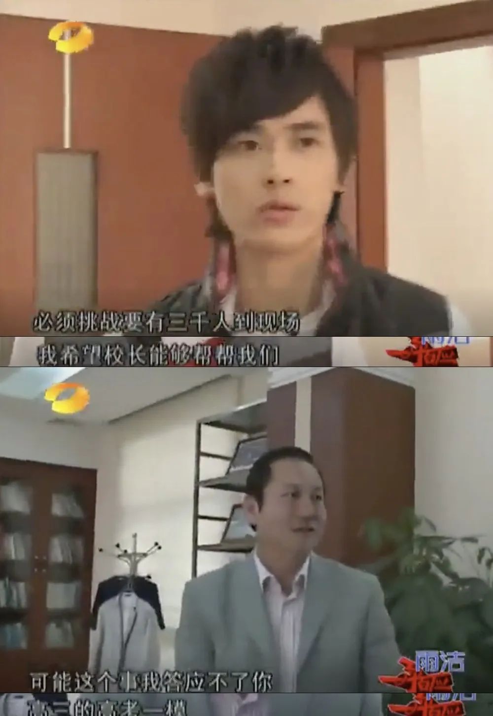 他第二天去自己“實習”的校園拉票,想找校長幫忙宣傳一下演唱會,卻被校長婉拒。因為錄節目的時候,正好碰上高三一模考試,校長認為還是要保證學生安全和學業。