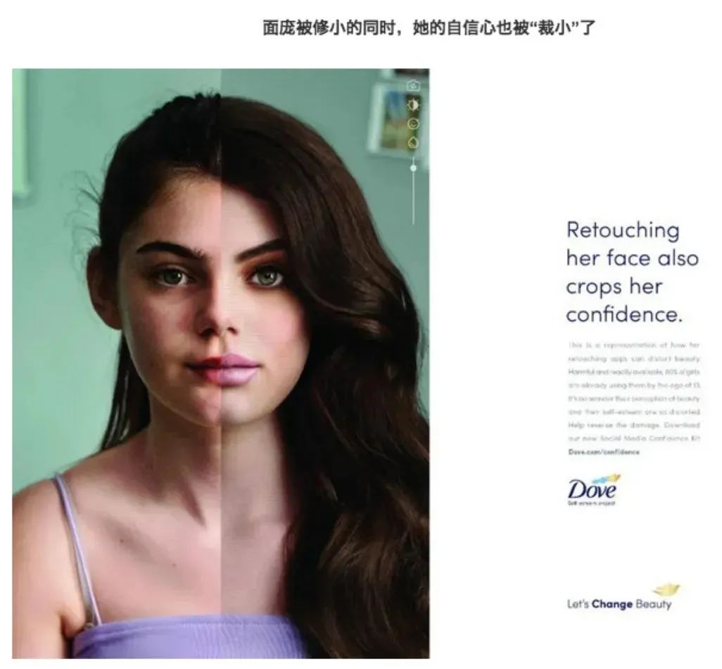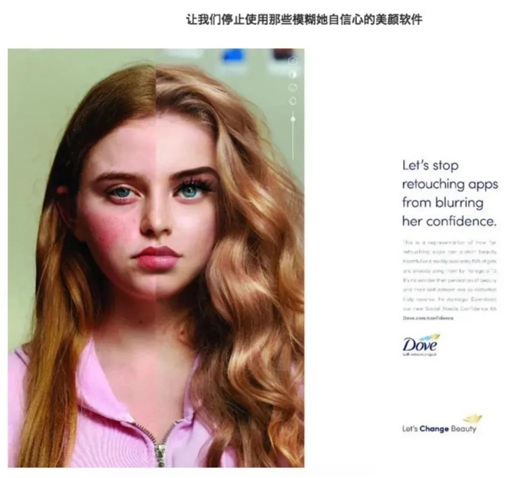多芬曾經做過一個廣告,探討“女性的自我容貌認知”。