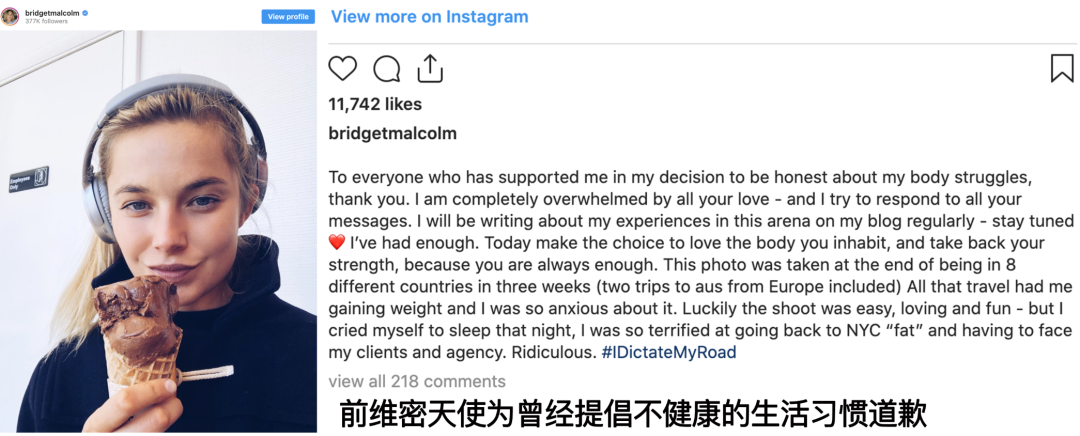 因臀圍胖了1.3釐米被維密除名的奶茶超模布里奇特·馬爾科姆,從15歲開始從未離開過**“極端節食”。**