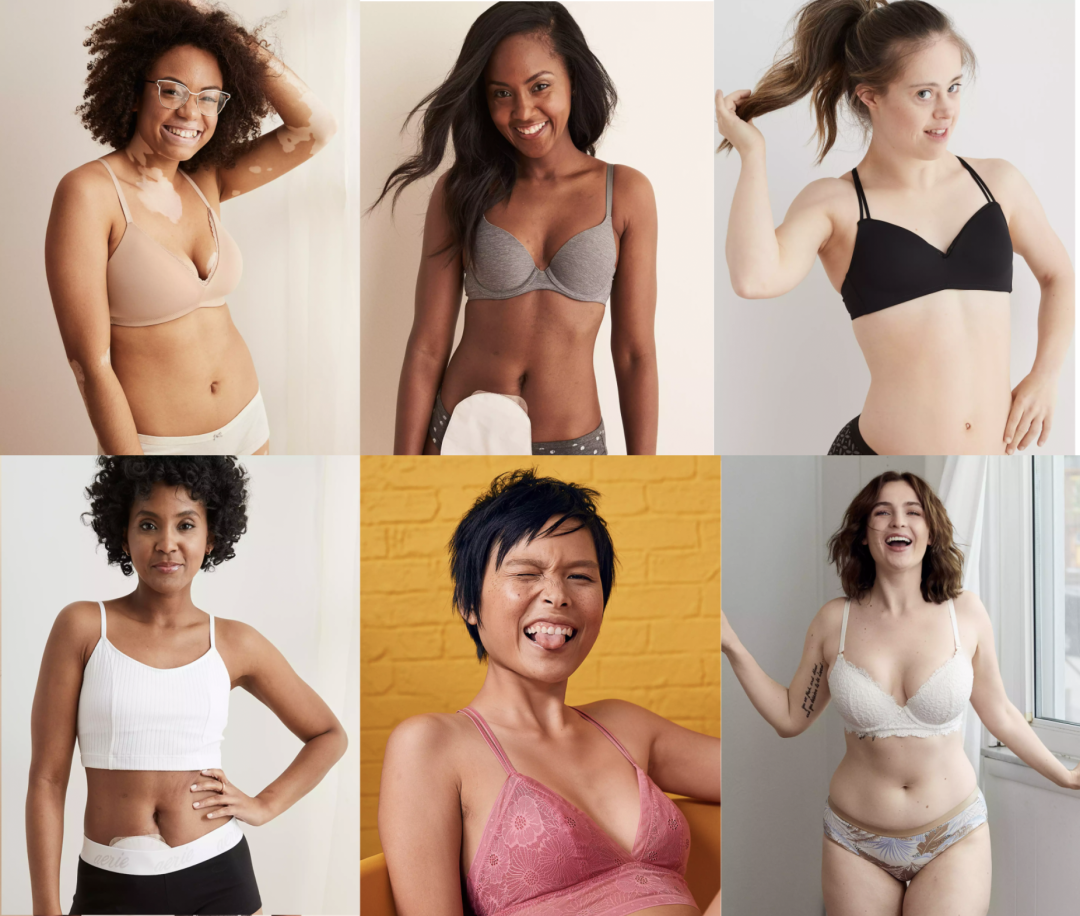 美國一個叫Aerie的內衣品牌,網購頁面有高矮胖瘦、各種身材、各種膚色的女孩。