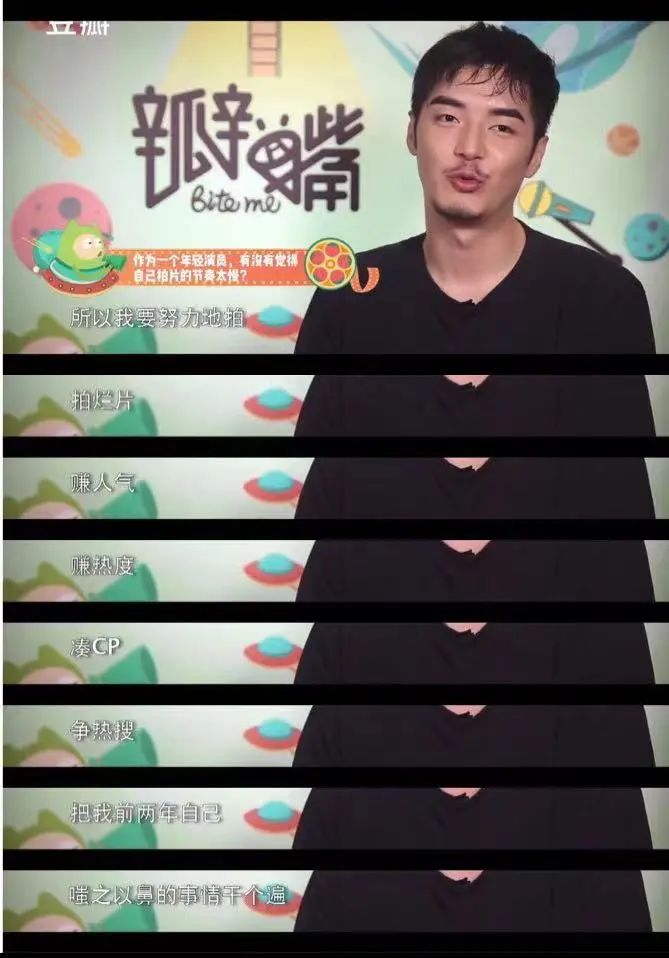 用他自己的話説:「我要努力地拍,拍爛片、賺人氣,賺熱度,湊cp,爭熱搜,把我前兩年自己都嗤之以鼻的事情都幹個遍。」