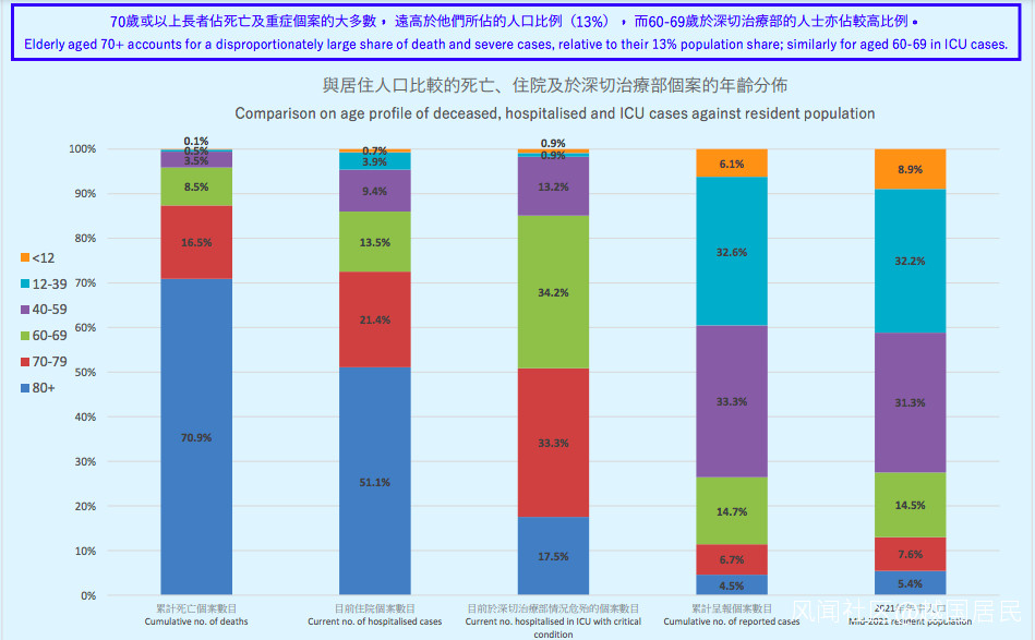 3月20日,香港特區政府發佈的新聞公報中顯示,第五波疫情的首5435宗死亡個案中,這其中80歲以上者死亡病例有3837例,佔所有死亡病例的7成多。