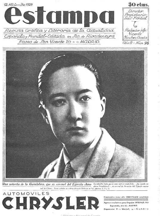 西班牙Estampa雜誌,更是將黃訥亭身着男裝的陽剛照,放在了雜誌的封面,在標題上註明:“中國的聖女貞德”。