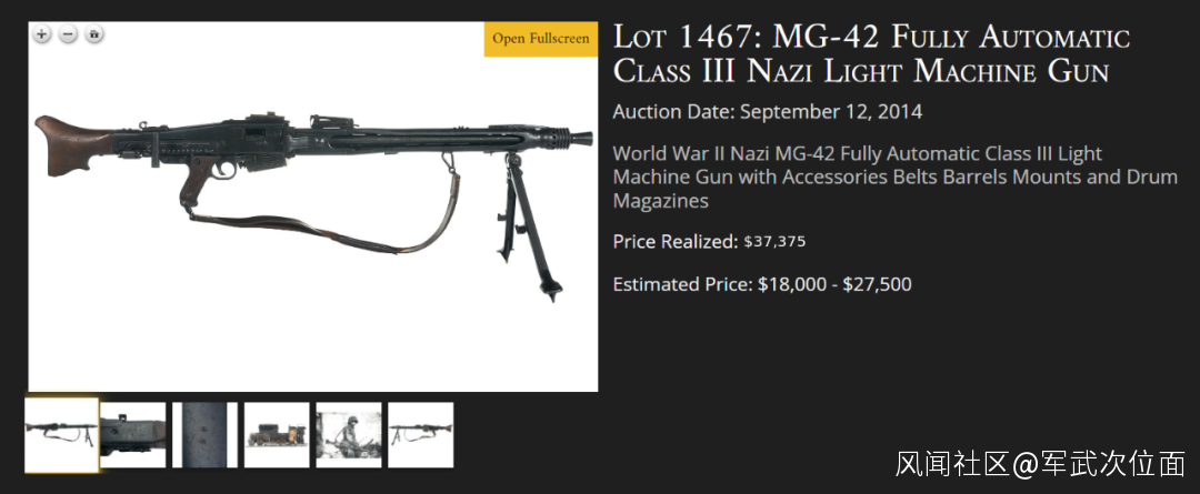 ▲美國拍賣行上的MG42,估價1.8~2.75萬美元