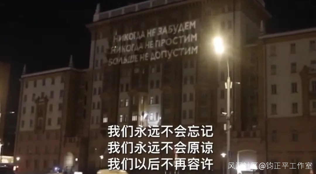 日前,在北約轟炸南斯拉夫聯盟23週年之際,美國駐莫斯科大使館的外牆上再度出現燈光投影,聲援塞爾維亞,譴責北約1999年轟炸南聯盟致萬千無辜平民死傷的殘暴行徑。“1999年3月24日,持續78天,我們永遠不會忘記,我們永遠不會原諒,我們以後不再容許,我們兩億人與塞爾維亞人同在!”
