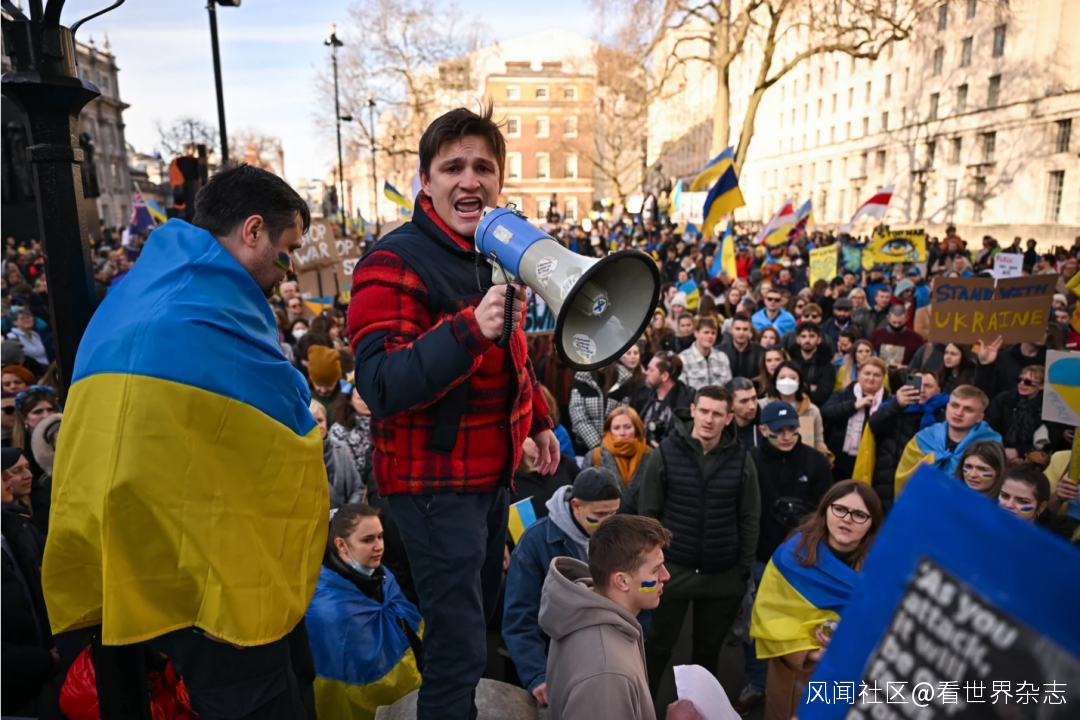 2月26日,烏克蘭支持者連續第三天在倫敦唐寧街外示威。